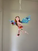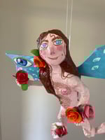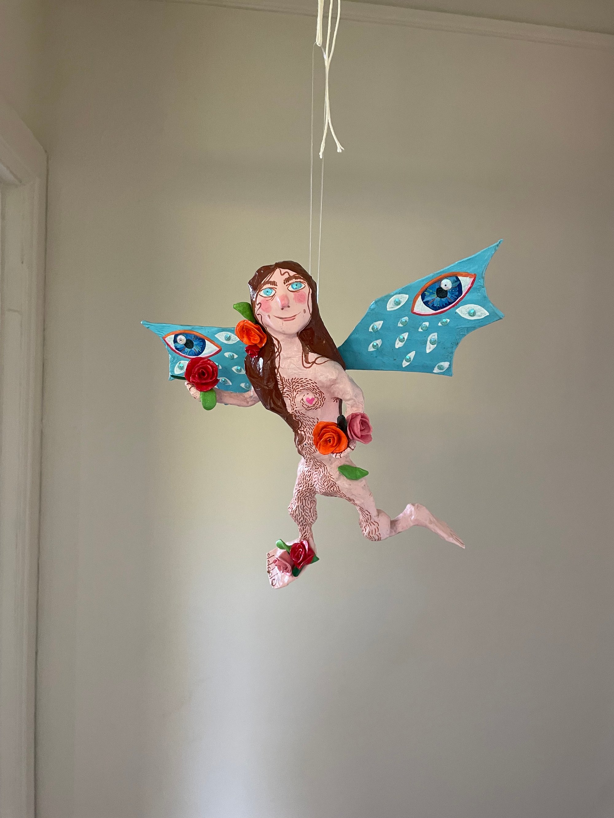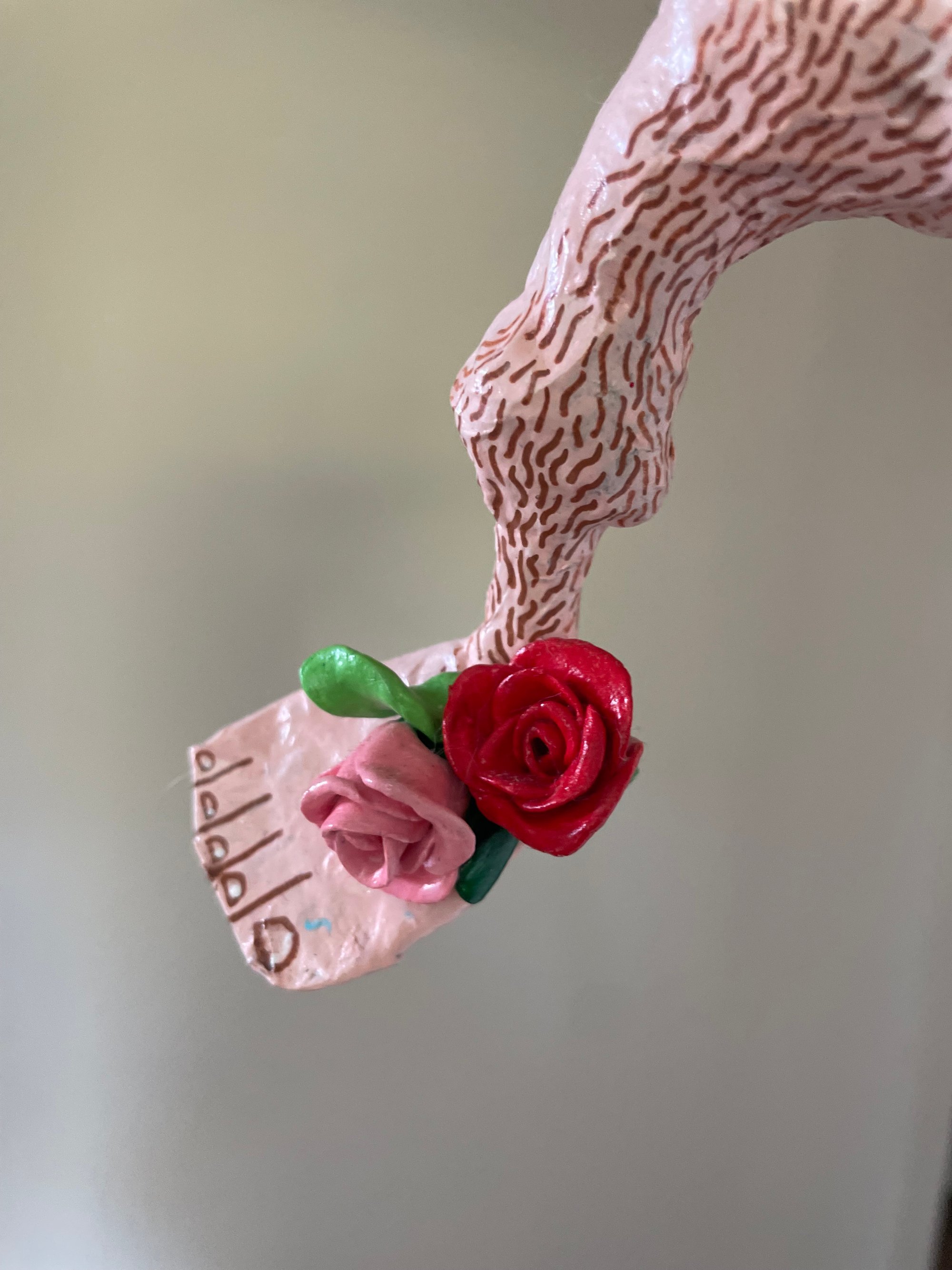 Paper mache body with clay features.