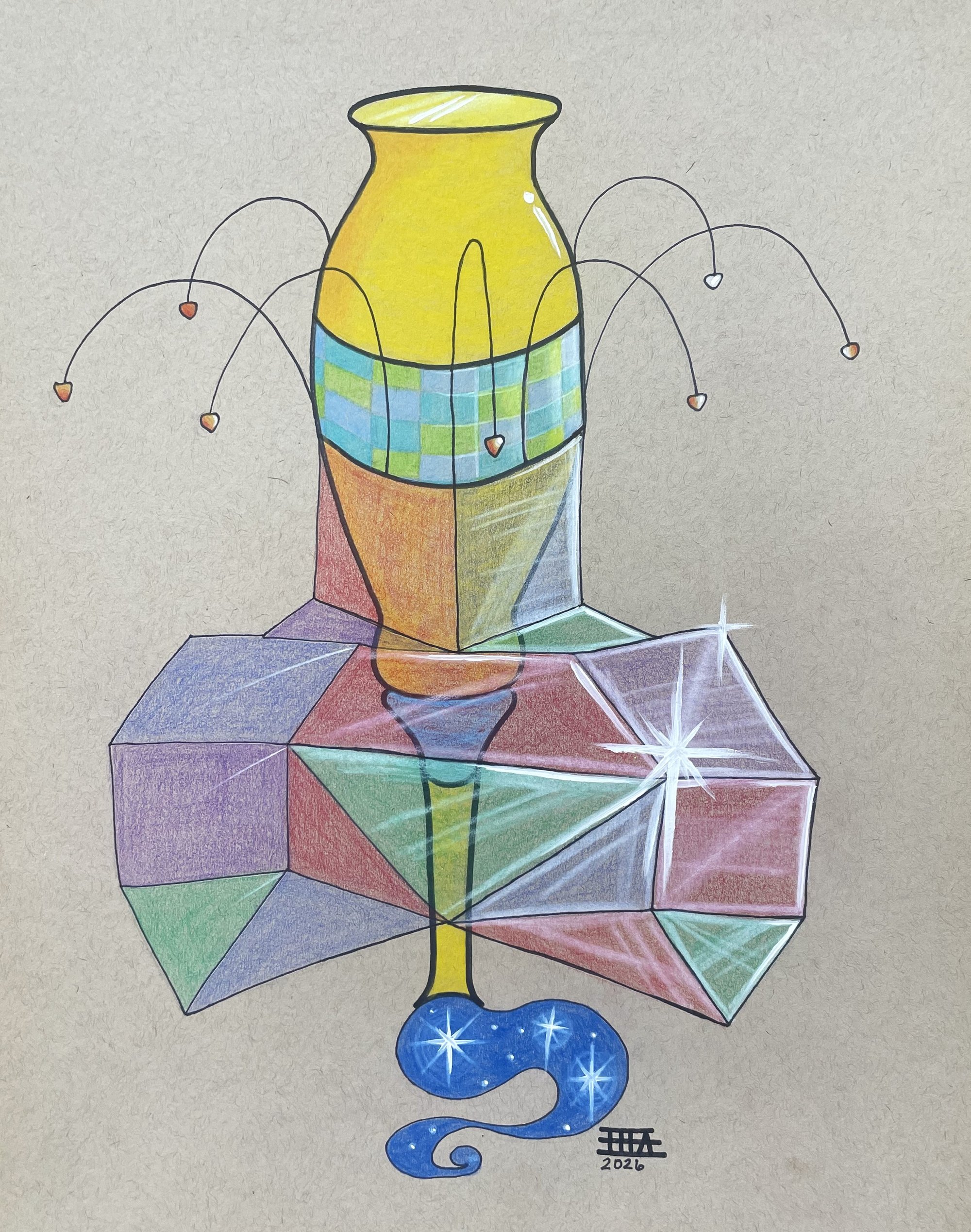 Colored pencils, permanent marker, & acrylic paint on paper.