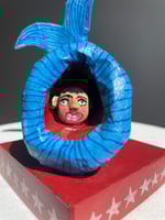 Paper mache body with clay features.