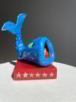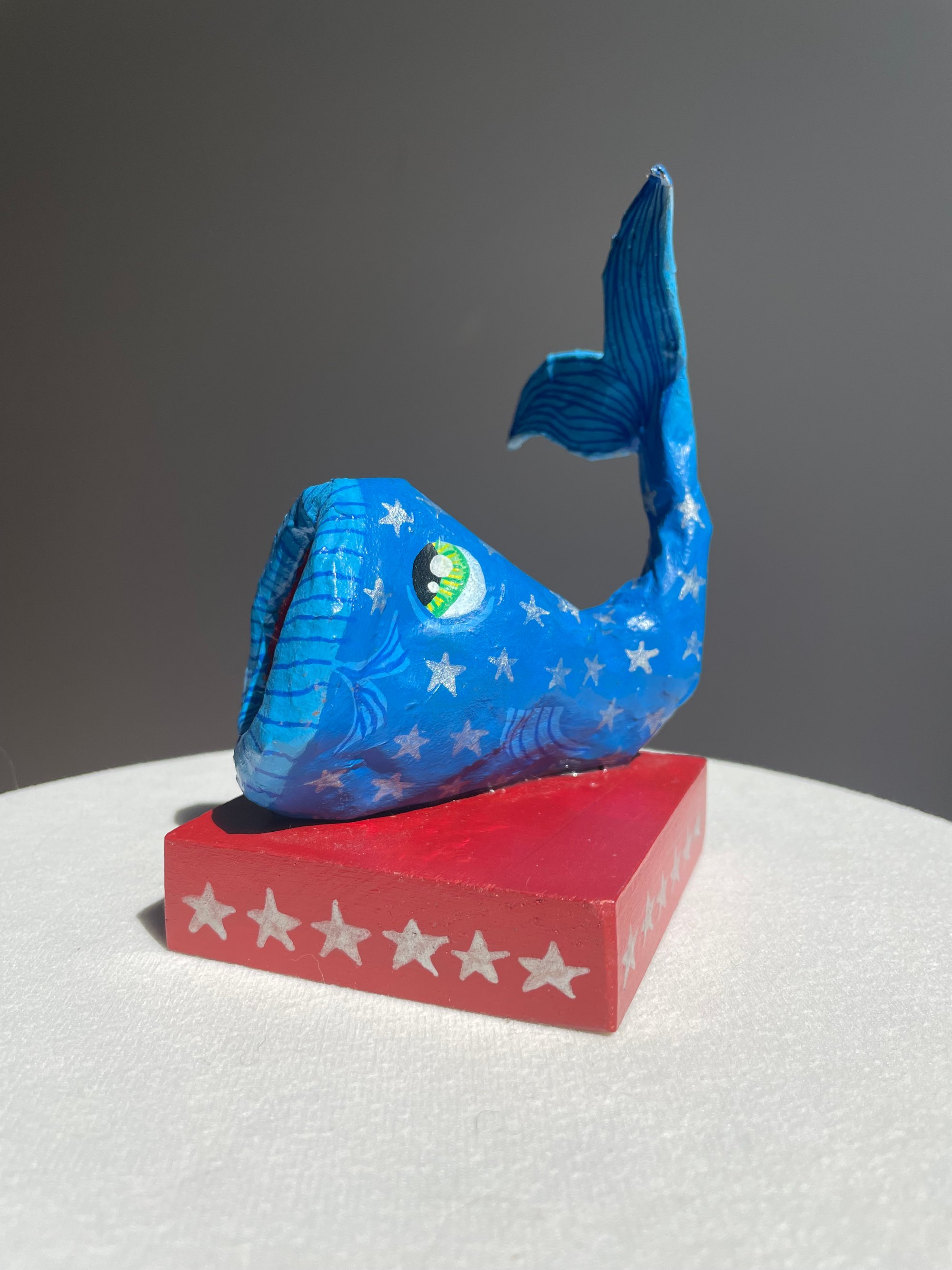 Stands flat on wood block.